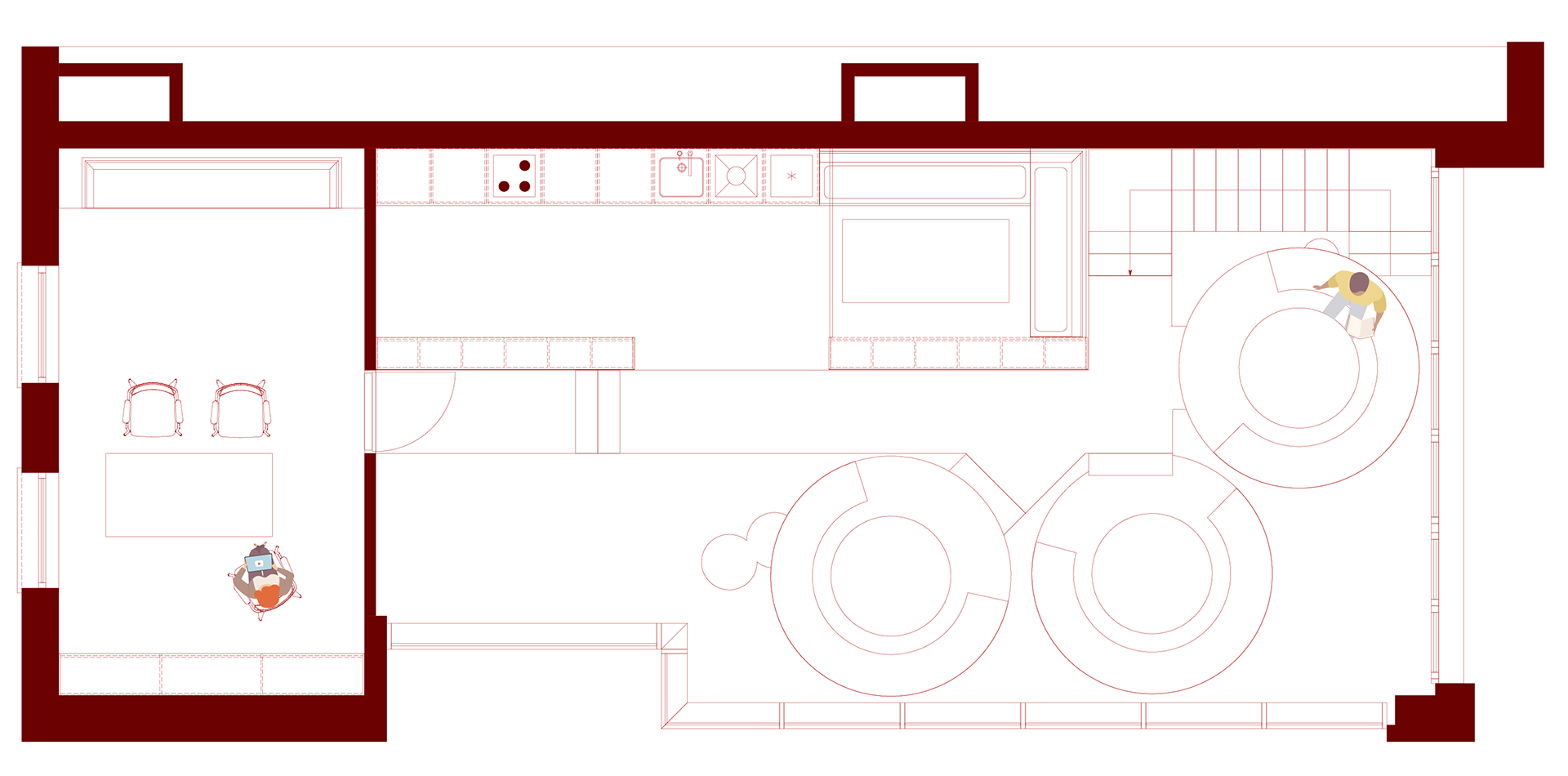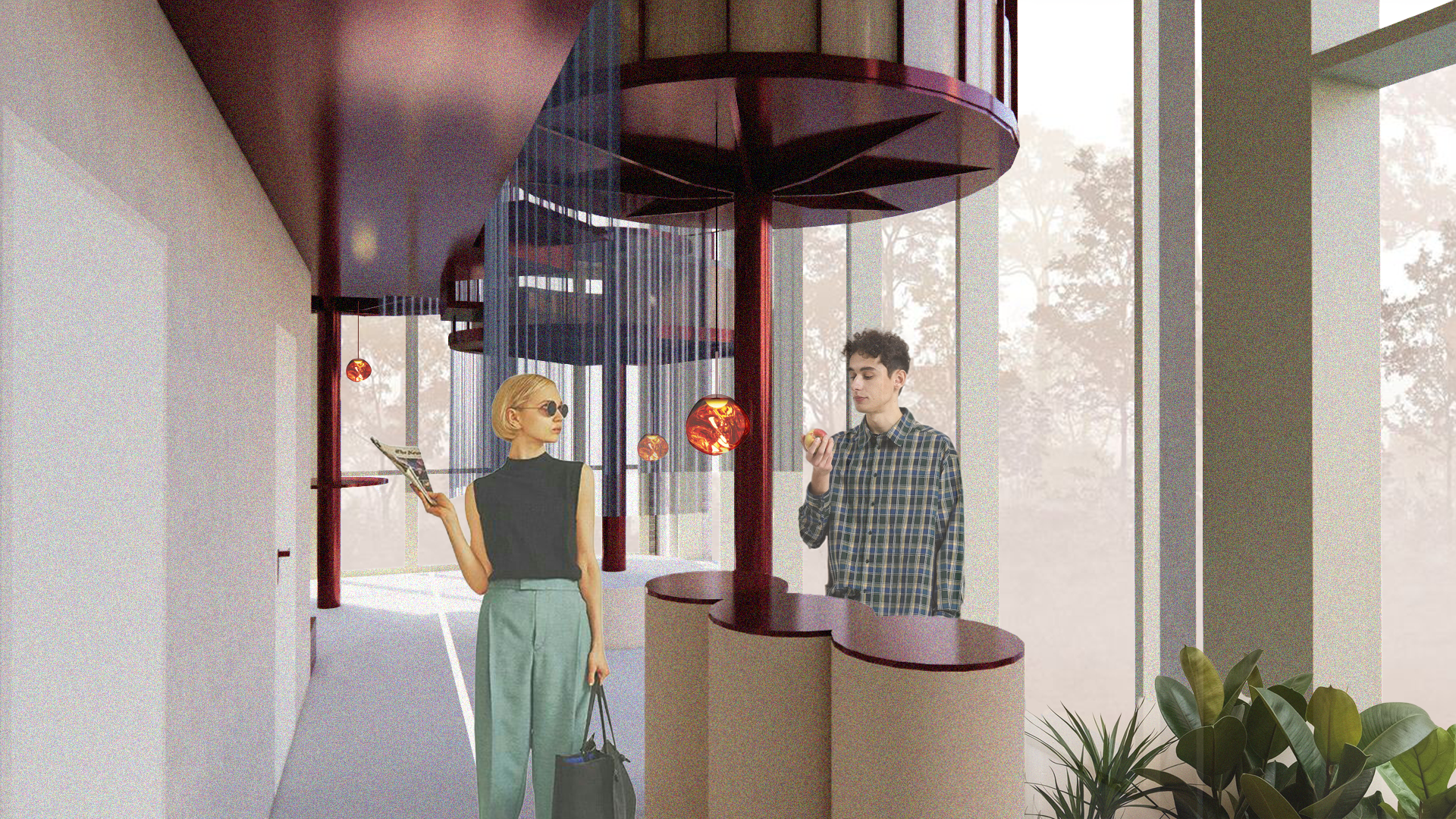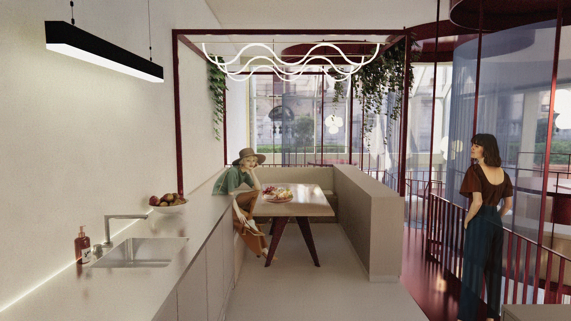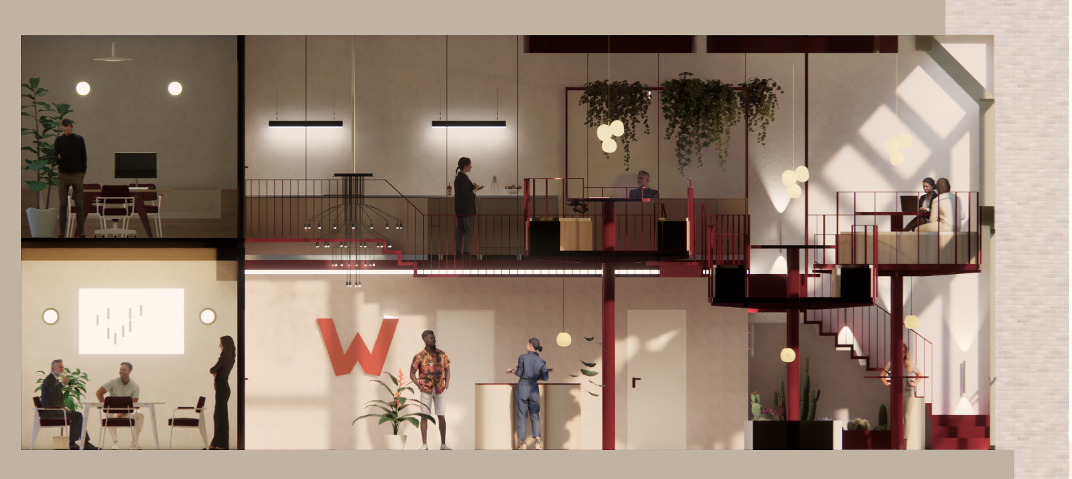 L’escalier en métal monumental relie les différents espaces et guide intuitivement les visiteurs, comme s’ils entamaient déjà une expédition avant même que le voyage ne commence.